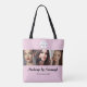 Market your business in style with this blush pink black script 3 photo makeup tote!
