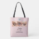 Lashes Studio Tote Bag - Blush Pink Black Script Font, Your Logo Here, 3 Photo, Lashes Business with name and social media handle.