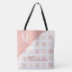 Nossa bolsa de tote monograma personalizada é adornada com um impressão de damasco cor-de-rosa suave e borrado. Personalize com seu nome e inicial. Veja nossa linha de produtos de cheio em nossa loja Zazzle.