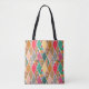Esta bolsa de tota tem um design de ouros Boho com diferentes padrões alternando com diamantes sólidos em uma paleta de cores Boho.