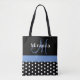 Bolsa Tote Bolinhas de Script de Monograma Azul Branco Preto