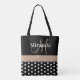 Bolsa Tote Bolinhas de Script do Monograma Branco Preto