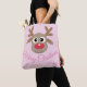 Bolsa Tote Bonita Reena de Natal Cartoon Girly Pink Nome
