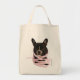 outubro é o mês de consciência do câncer de mama. mostre seu apoio com estes bolsas das canvas. betty, um buldogue francês, modelos uma fita cor-de-rosa envolvida em torno dela