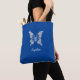Bolsa Tote Borboleta Diamante Branca, Nome do Script, Azul Pr