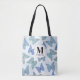 Bolsa Tote Borboletas Botânicas Azuis Personalizadas Monogram