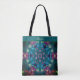 Esta bolsa de tote personalizada apresenta um elegante e moderno e belo mandala abstrato caleidoscópio luminoso multicolorido com um padrão de borboletas rosa giro sobre o fundo verde-escuro da turquesa. É um belo presente para mulheres e raparigas, ou para raparigas especiais que gostam de multicores luminosas e borboletas rosa fofinhas. Você pode alterar o nome, as fontes e as cores clicando em personalizar opções.