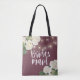 Modelos de Tote Bag de Casamento de Bridesmaid - Flores de Hydrangea Hydrangea, adoráveis Brancas Elegantes, e Luzes de Cordas no Fundo Vermelho Borgonha. Um Design Perfeito Para O Seu Grande Dia! Todo Estilo De Texto, Cores, Tamanhos Podem Ser Modificados Para Ajustado Das Suas Necessidades.