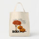 Bolsas de Truque de Halloween ou Tratar. Família de Abóbora Bonita de pé por uma árvore com Folhas de Outono Laranja em um Saco de Tota Esturdy. Lua branca e nuvens com uma família de Cabeça de Abóbora de Halloween, sorridente, com um grande Boo Amigo!