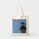 Bonito Cabo Branco e Vermelho May, Farol de Nova Jersey com um céu azul. Manter o texto como está, adicionar sua própria caixa de texto ou excluir. Um saco de tote adorável para quem ama faróis, praia ou viagem. Perfeito para snacks e artigos de praia para carregando, presentes, artigos de mercearia, etc. Fotografia original © TamiraZDesign. Todos os Direitos Reservados.