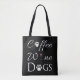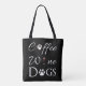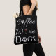 Um saco perfeito para aqueles que amam café, vinho e cachorros. O design de saco de Tote apresenta um texto de rico para café com um adorno de café para a letra "o", vinho que contém um copo de vinho tinto para a letra "i", e cães com um embelezamento de pata em substituição do "o". Itens de presentes adicionais disponíveis com este design também.