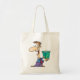 Um homem de pé segurando uma caixa que tem a palavra qualidade nela. Este design parece realmente eficaz nesta Tote Bag