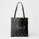 Caligrafia espiritual e estrelas sobre fundo negro Tote Bag. O texto espirituoso pode ser personalizado.