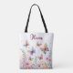 Esta bolsa personalizada apresenta um maravilhoso jardim de borboletas aquáticas, onde borboletas de asas coloridas dançam entre flores silvestres. Com um fundo calmante de tons cor-de-rosa, azuis e pêssego, essa charmosa ilustração cria uma atmosfera mágica e serena.