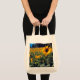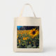 Esta bolsa ecológica apresenta um campo de girassóis ouros, rostos virados para o sol — é isso que vocês verão toda vez que carregar esta na moda, mas prática, de tote.