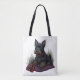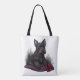 Esta deliciosa bolsa de tote apresenta um encantador Terrier escocês sentado orgulhosamente num cobertor tradicional, exuando calor e elegância.