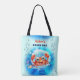 Saco de tote bonito com um caranguejo adorável em azul e laranja azul-turquesa. Excelente para férias de verão, praia, piscina e muito mais. Personalize facilmente o texto ou deixe-o vazio. - Kate Eden Art