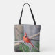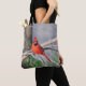 O Cardeal Norte vermelho-escuro apresenta um retrato adorável na bolsa de tote útil. Ideia de presente ideal para aqueles que amam esses pássaros alegres!