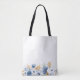 Carregar seu essencial em estilo com esta elegante bolsa de tote com flores azuis, brancas e douradas. Perfeito para favores de casamento, uso cotidiano, ou como presente pensativo, esta bolsa adiciona um toque de sofisticação romântica a qualquer ocasião.