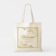 Esta bolsa de tote é o presente perfeito para a obrigado por ser uma dama de honra no seu casamento. O design é simples, mas elegante, com coalhada de ouro e espirais. No título lê-se: Bridesmaid, com espaço para seu nome, os nomes do casal de casamento e a data do casamento.
