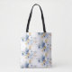 Carregue seus pertences com estilo nesta linda bolsa adornada com um design floral suave e romântico em azul poeirento, branco e dourado. Perfeita como lembrança de casamento, bolsa diária elegante ou presente atencioso, adiciona um toque de elegância floral a qualquer ocasião.