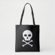 Saco de tota do ombro com uma design contendo o desenho simples de um crânio e ossos cruzados. A cor do preenchimento e traçados (bordas) do crânio e dos ossos, bem como o tamanho, podem ser alterados para sua preferência na seção "Editar este design".