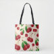 O padrão das cerejas em todo o saco de impressão é colorido com solteiros vermelhos brilhantes e cerejas pareadas com folhas e caules ainda intactos, como se fosse colhido da cerejeira, arranjado de forma aleatória - o fundo do marfim é personalizável - opções disponíveis: grande saco de tota e um saco de tota de corpo cruzado - por katz_d_zynes