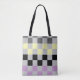 Divirta-se com esta bolsa de tote de tabuleiro com um impressão colorido que é diferente em ambos os lados.