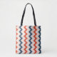 Bolsa Tote Chevron zigzag design azul escuro cor de laranja r