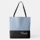 Esta linda bolsa tote moderna exibe a palavra "Noiva" em texto branco sobre preto com a parte superior da bolsa em Azul Antigo. Tem espaço de sobra para texto personalizado. Gráficos e texto estão em ambos os lados desta bolsa. Alça preta. Personalize ainda mais ou compre como mostrado.