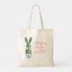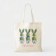 Esta bolsa de algodão de Páscoa apresenta adoráveis coelhos com topiárias verdes com laços rosa, azul e amarelo em vasos de flores de chinoiserie azul e branco. Personalize o nome na frente e a mensagem de feriado no verso com o texto especial de sua escolha.
