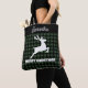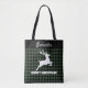 Bolsa Tote Christmas Green & Black Plaid Reindeer Custom Name