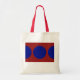 Este padrão geométrico em negrito apresenta um círculo azul no centro e duas meias-círculos azuis nas bordas de um fundo vermelho. Se quiser adicionar um monograma ou imagem ao design, clique no botão "Personalizar!". Imagem criada digitalmente. Copyright © 2011 Claire E. Skinner. Todos os direitos reservados.