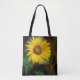 Um girassol olha grande em uma bolsa de canvas. Tome-lhe a compra ou à praia!