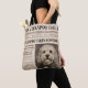 Saca de mão de Cockapoo em estilo vintage com um design de jornal clássico e um charmoso retrato de Cockapoo. Perfeito para donos de Cockapoo e amantes de cães que desejam algo único e cheio de personalidade. Uma ótima ideia de presente para quem é obcecado pelo seu cão e adora estilo vintage atemporal.