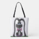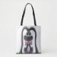 Esta bolsa de tote adorável apresenta Jack, o coelho amável da cinza vestido com sua gravata de arco rosa favorita. Personalize este saco de totas coelho adicionando ou excluindo o texto para deixá-lo vazio. É baseado em uma peça de arte original por © One Artsy Momma.