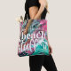 Bolsa Tote Coisas de praia de mármore rosa e verde personaliz