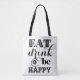 Coma, bebida e esteja feliz - cite o fundo tipográfico. Vector a ilustração EPS8. | Bigstock® - todos os direitos reservados.