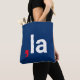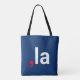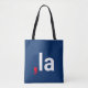 Coma La kamala pronúncia engraçada da tipografia moderna, branco vermelho e saco de tote patriótico azul. Tipografia moderna vermelha e branca sobre fundo azul editável.