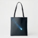 Um cometa brilhante cria uma brilhante bola de felpudo no céu noturno, seguida de uma cauda azul e esperta enquanto se move lentamente entre as estrelas nesta visão estelar avançada.