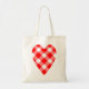 Adorável coração vermelho brilhante de gingham num saco de tote de cor natural. Bela e simples design.