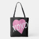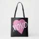 Carregar os abraços e beijos com você com esta bolsa de tote de excelente. Simples coração rosa sobre fundo preto com beijos e abraços.
