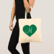 Esta bolsa tote apresenta um coração verde kelly com uma inicial monograma branca no centro. Personalize redimensionando/reposicionando o coração verde e/ou personalizando o texto/monograma. Ótimo presente para madrinhas.