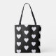 Corações brancos gráficos em um na moda e moda black_bolsa personalizados com seu próprio nome e inicial