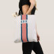 Personalize este bolsa listrado colorido com seu monograma inicial de solteiro para um saco que é exclusivo seu! Eterno de pré-disquete clássico e design de de pré-disquete apresenta uma faixa vertical de corrida em coral vibrante e azul marinho rico com seu três monograma inicial no centro.