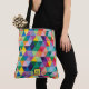 Esta bolsa de tote monograma tem todas as cores do arco-íris para ir com tudo e nunca estar fora de moda. Criado em um padrão geométrico repetitivo ou em formas de triângulo. Sua escolha de médio ou grande e dois estilos (bolsa ou mensageiro). Apenas personalize o texto do monograma no editor fácil do Zazzle. Máscara de rosto e outras opções de cor disponíveis neste mesmo estilo nas Bolsas e Capas de Bee no Zazzle.