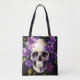 Bolsa Tote Crânio Com Flores Roxas Gótico Aquarela