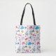 Crianças Bonitas Unicorn Rainbow Whimsical Pink e Blue Bag. Esta bolsa tem um design de padrão colorido com ilustrações desenhadas à mão e faz um presente excelente para uma garotinha. Se você gosta deste design, dê uma olhada nos outros itens desta coleção. Se quiser um produto diferente com este design, envie um e-mail para fabuloushousedesigns@gmail.com