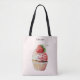 Um saco com uma ilustração brilhante com um cupcake delicioso. Sorvete branco e um morango grande adoram este doce doce doce.