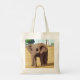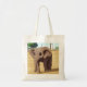 An illustration from a photograph of a cute elephant printed on both sides of a tote bag.